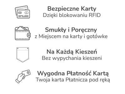 Karty są chronione przed nieautoryzowanym odczytem RFID, a gotówka zawsze jest bezpiecznie schowana.