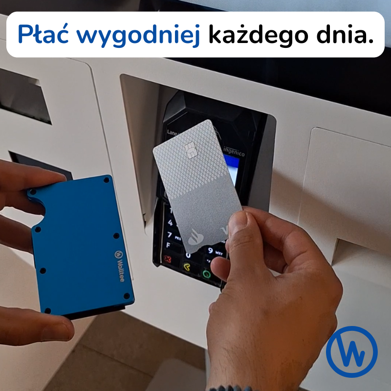 Portfel blokuje sygnał RFID, więc musisz wyjąć kartę z portfela, aby zapłacić zbliżeniowo. Blokowanie sygnału działa gdy karta znajduje się w środku portfela, aby chronić twoje dane przed nieautoryzowanym odczytem.